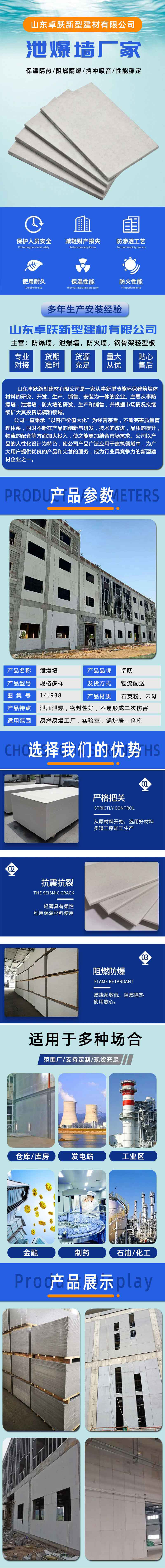 兖州厂家供应化工厂泄爆墙 特种泄爆墙板 导热系数小 泄散迅速